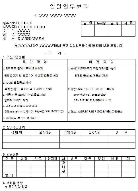 홈 회사서식 [서식] 일일업무보고 [서식] 일일업무보고 하보니 2월 05, 2021 서 식 명: 일일업무보고서식 포맷: 파일 다운로드: 일일업무보고.xls Tags: 문서/서식회사서식 Facebook Twitter Whatsapp 다음 이전