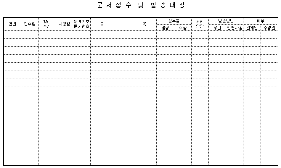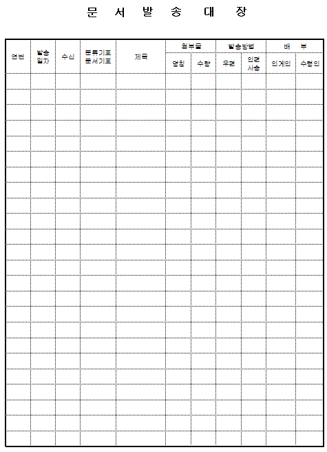 홈 생활서식 [서식] 문서 접수 및 발송 대장 (4종) [서식] 문서 접수 및 발송 대장 (4종) 하보니 2월 05, 2021 서 식 명: 문서 접수 및 발송 대장 (4종)서식 포맷: 파일 다운로드: 문서접수 및 발송대장 (4종).zip 문서발송대장 4종류입니다. “문서접수 및 발송대장”이 포함되어 있으며 Sample 발송대장이 포함된 서식입니다. Sample 발송대장은 다른 용도로 수정해서 사용 가능합니다. Tags: 문서/서식생활서식 Facebook Twitter Whatsapp 다음 이전