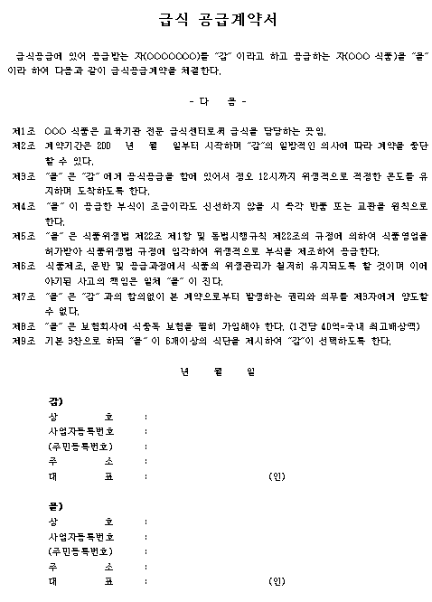 홈 문서/서식 [서식] 급식공급계약서(급식납품계약서) [서식] 급식공급계약서(급식납품계약서) 하보니 2월 19, 2021 서 식 명: 급식공급계약서(급식납품계약서) 서식 포맷: 파일 다운로드: 급식공급계약서(급식납품계약서).zip Tags: 계약서문서/서식 Facebook Twitter Whatsapp 다음 이전