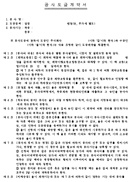 홈 문서/서식 [서식] 공사도급계약서 [서식] 공사도급계약서 하보니 2월 19, 2021 서 식 명: 공사도급계약서 서식 포맷: 파일 다운로드: 공사도급계약서.hwp Tags: 계약서문서/서식 Facebook Twitter Whatsapp 다음 이전