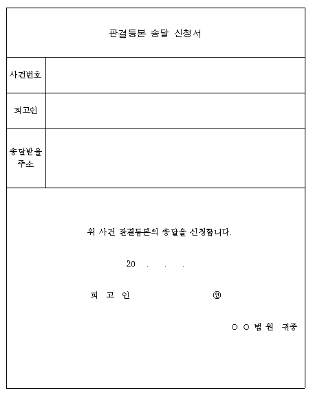 홈 민원/행정 [서식] 판결등본 송달 신청서 [서식] 판결등본 송달 신청서 하보니 2월 19, 2021 서 식 명: 판결등본 송달 신청서 서식 포맷: 파일 다운로드: 판결등본 송달 신청서.hwp Tags: 문서/서식민원/행정 Facebook Twitter Whatsapp 다음 이전