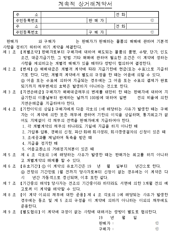 홈 문서/서식 [서식] 계속적 상거래계약서 [서식] 계속적 상거래계약서 하보니 2월 20, 2021 서 식 명: 계속적 상거래계약서 서식 포맷: 파일 다운로드: 계속적 상거래계약서.hwp Tags: 계약서문서/서식 Facebook Twitter Whatsapp 다음 이전