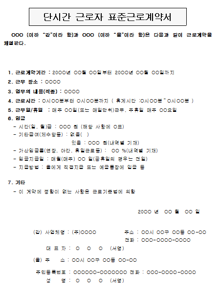 홈 문서/서식 [서식] 단시간 근로자 표준근로계약서 [서식] 단시간 근로자 표준근로계약서 하보니 2월 20, 2021 서 식 명: 단시간 근로자 (표준근로계약서) 서식 포맷: 파일 다운로드: 단시간 근로자 표준근로계약서.zip Tags: 계약서문서/서식 Facebook Twitter Whatsapp 다음 이전
