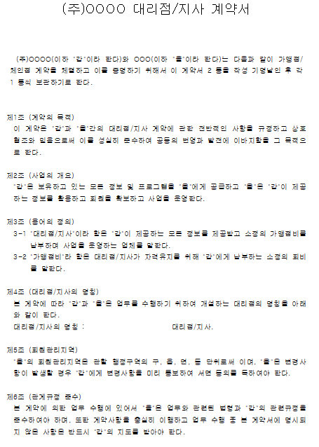 홈 문서/서식 [서식] 대리점지사계약서 [서식] 대리점지사계약서 하보니 2월 20, 2021 서 식 명: 대리점지사계약서 서식 포맷: 파일 다운로드: 대리점지사계약서.zip Tags: 계약서문서/서식 Facebook Twitter Whatsapp 다음 이전