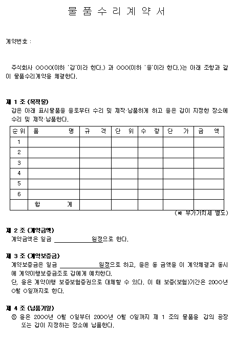 홈 문서/서식 [서식] 물품 수리 계약서 [서식] 물품 수리 계약서 하보니 2월 21, 2021 서 식 명: 물품 수리 계약서 서식 포맷: 파일 다운로드: 물품수리계약서.zip Tags: 계약서문서/서식 Facebook Twitter Whatsapp 다음 이전