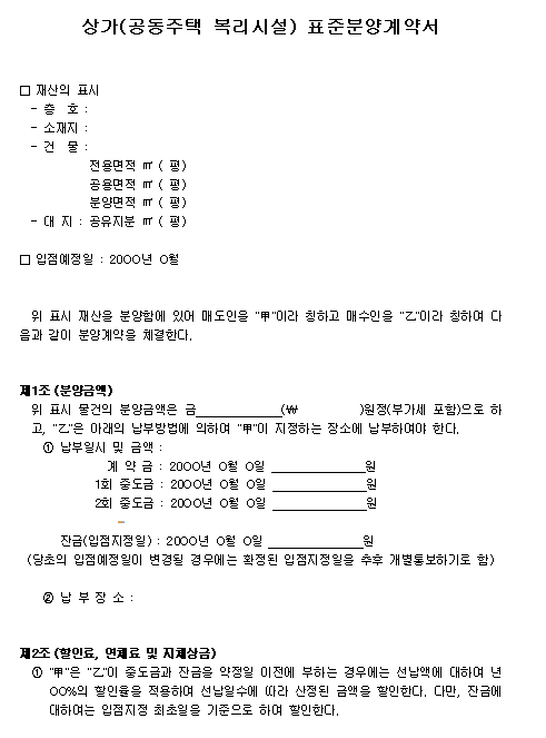 홈 문서/서식 [서식] 상가(공동주택 복리시설) 표준분양계약서 [서식] 상가(공동주택 복리시설) 표준분양계약서 하보니 2월 21, 2021 서 식 명: 상가(공동주택 복리시설) 표준분양계약서 서식 포맷: 파일 다운로드: 상가(공동주택 복리시설)표준분양계약서.zip Tags: 계약서문서/서식 Facebook Twitter Whatsapp 다음 이전
