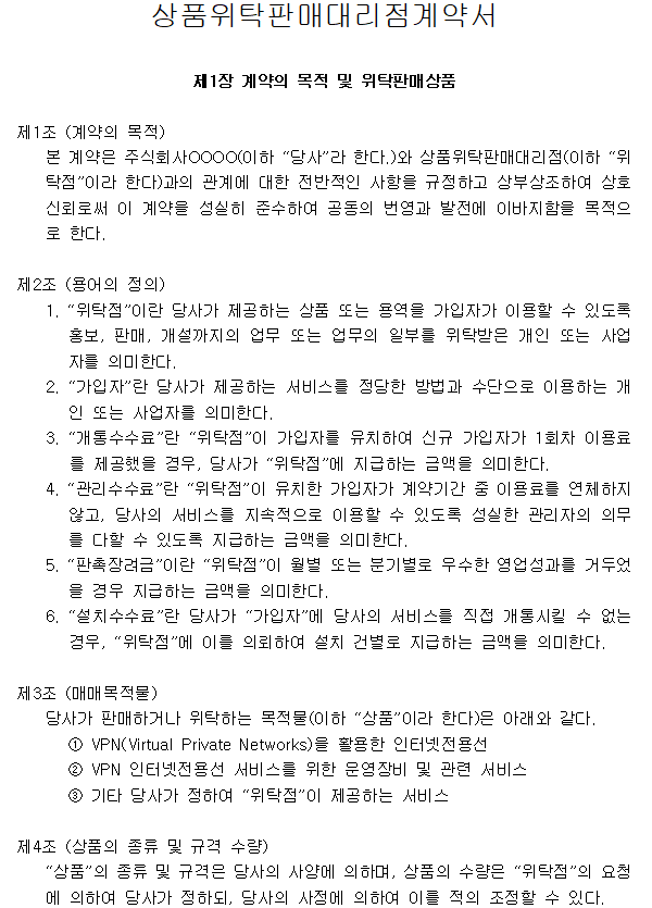홈 문서/서식 [서식] 상품위탁판매대리점계약서 [서식] 상품위탁판매대리점계약서 하보니 2월 22, 2021 서 식 명: 상품위탁판매대리점계약서서식 포맷: 파일 다운로드: 상품위탁판매대리점계약서.zip Tags: 계약서문서/서식 Facebook Twitter Whatsapp 다음 이전