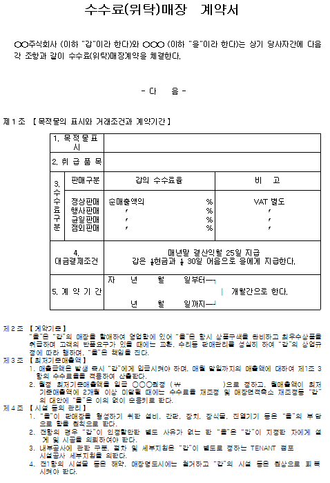 홈 문서/서식 [서식] 수수료위탁(매장)계약서 [서식] 수수료위탁(매장)계약서 하보니 2월 22, 2021 서 식 명: 수수료위탁(매장)계약서서식 포맷: 파일 다운로드: 수수료위탁(매장)계약서.zip Tags: 계약서문서/서식 Facebook Twitter Whatsapp 다음 이전