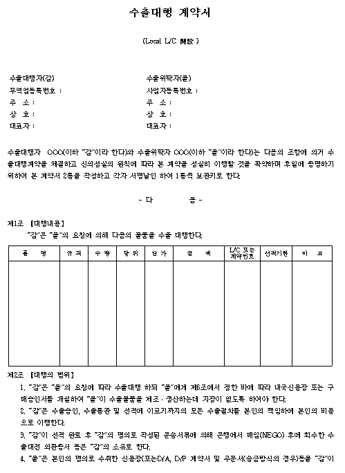 홈 문서/서식 [서식] 수출대행 계약서 (2종) [서식] 수출대행 계약서 (2종) 하보니 2월 22, 2021 서 식 명: 수출대행 계약서 (2종)서식 포맷: 파일 다운로드: 수출대행계약서 (2종).zip Tags: 계약서문서/서식 Facebook Twitter Whatsapp 다음 이전