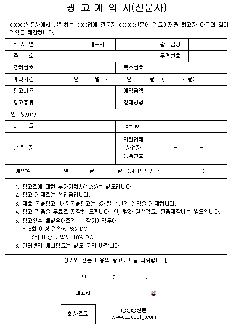홈 문서/서식 [서식] 신문사 광고계약서 [서식] 신문사 광고계약서 하보니 2월 22, 2021 서 식 명: 신문사 광고계약서서식 포맷: 파일 다운로드: 신문사 광고계약서.zip Tags: 계약서문서/서식 Facebook Twitter Whatsapp 다음 이전