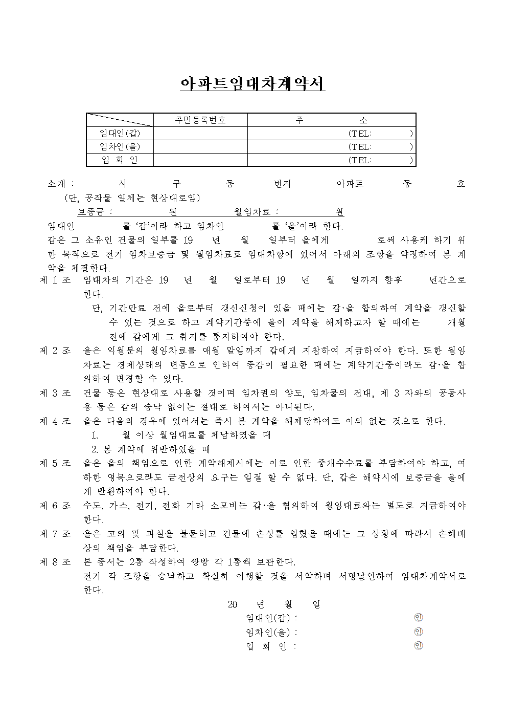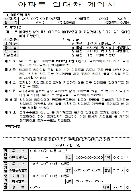 홈 문서/서식 [서식] 아파트 임대차계약서 (3종) [서식] 아파트 임대차계약서 (3종) 하보니 2월 22, 2021 서 식 명: 아파트 임대차계약서 (3종)서식 포맷: 파일 다운로드: 아파트임대차계약서 (3종).zip Tags: 계약서문서/서식 Facebook Twitter Whatsapp 다음 이전