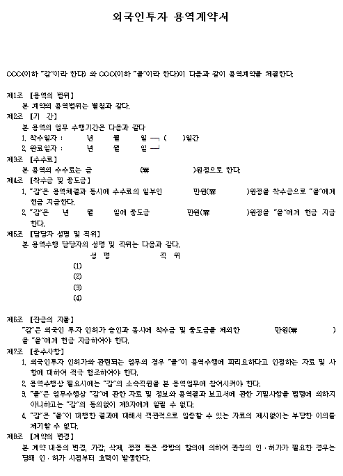 홈 문서/서식 [서식] 외국인투자 용역계약서 [서식] 외국인투자 용역계약서 하보니 2월 23, 2021 서 식 명: 외국인투자 용역계약서서식 포맷: 파일 다운로드: 외국인투자 용역계약서.zip Tags: 계약서문서/서식 Facebook Twitter Whatsapp 다음 이전