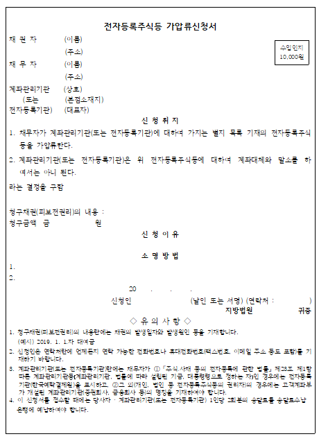 홈 민원/행정 [서식] 전자등록주식등 가압류신청서 [서식] 전자등록주식등 가압류신청서 하보니 2월 23, 2021 서 식 명: 전자등록주식등 가압류신청서서식 포맷: 파일 다운로드: 전자등록주식등 가압류신청서.hwp Tags: 문서/서식민원/행정 Facebook Twitter Whatsapp 다음 이전