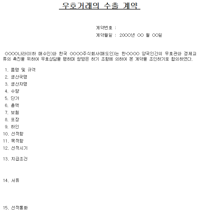 홈 문서/서식 [서식] 우호거래 수출계약서 [서식] 우호거래 수출계약서 하보니 2월 23, 2021 서 식 명: 우호거래 수출계약서서식 포맷: 파일 다운로드: 우호거래 수출계약서.zip Tags: 계약서문서/서식 Facebook Twitter Whatsapp 다음 이전