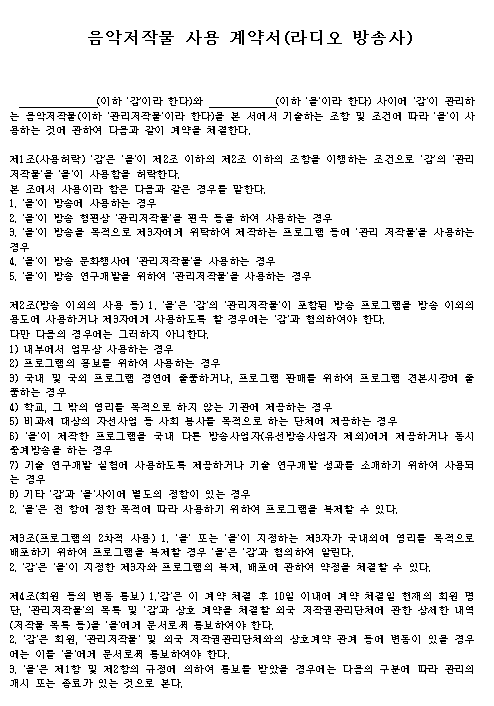 홈 문서/서식 [서식] 음악저작물 사용계약서(라디오 방송사) [서식] 음악저작물 사용계약서(라디오 방송사) 하보니 2월 23, 2021 서 식 명: 음악저작물 사용계약서(라디오 방송사)서식 포맷: 파일 다운로드: 음악저작물 사용계약서(라디오 방송사).zip Tags: 계약서문서/서식 Facebook Twitter Whatsapp 다음 이전