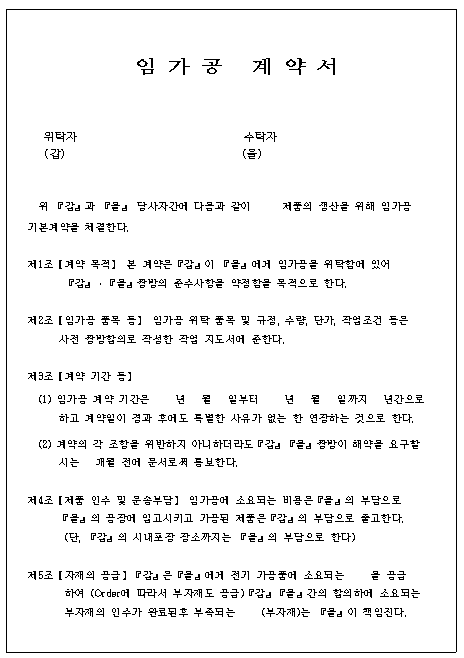홈 문서/서식 [서식] 임가공 계약서 (4종) [서식] 임가공 계약서 (4종) 하보니 2월 24, 2021 서 식 명: 임가공 계약서 (4종) 서식 포맷: 파일 다운로드: 임가공 계약서 (4종).zip 기본 계약서가 포함된 서식입니다. Tags: 계약서문서/서식 Facebook Twitter Whatsapp 다음 이전