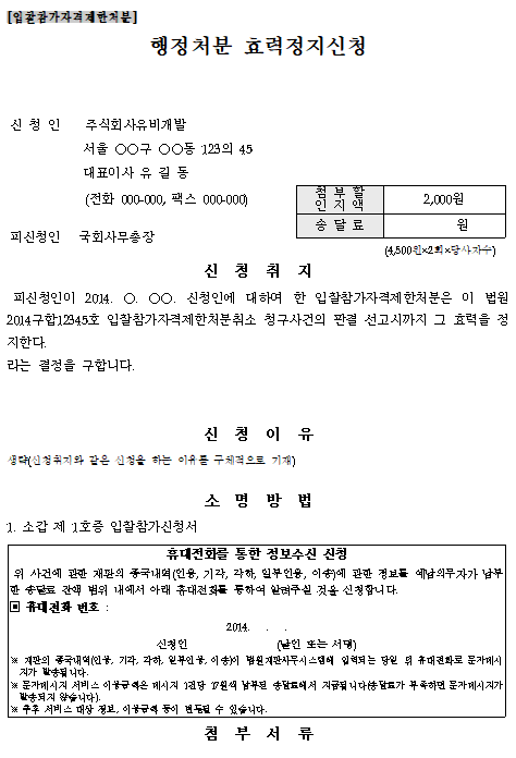 홈 민원/행정 [서식] 행정처분 효력정지신청서 [입찰참가자격제한처분] [서식] 행정처분 효력정지신청서 [입찰참가자격제한처분] 하보니 2월 24, 2021 서 식 명: 행정처분 효력정지신청서 [입찰참가자격제한처분] 서식 포맷: 파일 다운로드: 행정처분 효력정지신청서[입찰참가자격제한처분].hwp Tags: 문서/서식민원/행정 Facebook Twitter Whatsapp 다음 이전