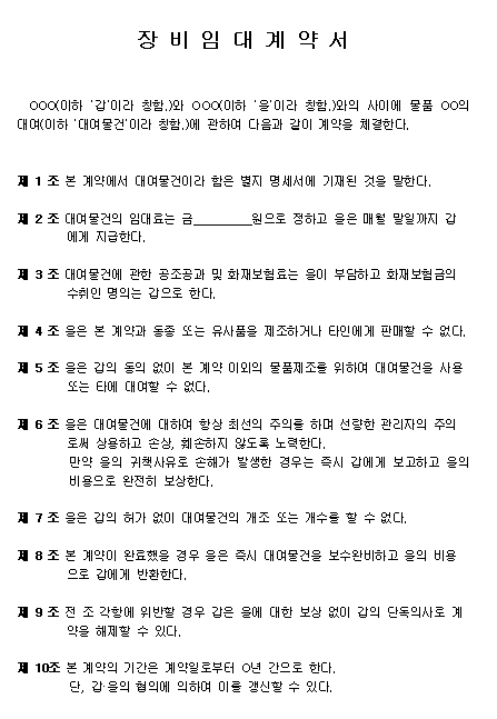 홈 문서/서식 [서식] 장비임대계약서 [서식] 장비임대계약서 하보니 2월 25, 2021 서 식 명: 장비임대계약서 서식 포맷: 파일 다운로드: 장비임대계약서.zip Tags: 계약서문서/서식 Facebook Twitter Whatsapp 다음 이전