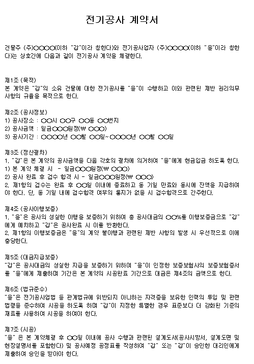 홈 문서/서식 [서식] 전기공사 계약서 [서식] 전기공사 계약서 하보니 2월 25, 2021 서 식 명: 전기공사 계약서 서식 포맷: 파일 다운로드: 전기공사 계약서.zip Tags: 계약서문서/서식 Facebook Twitter Whatsapp 다음 이전