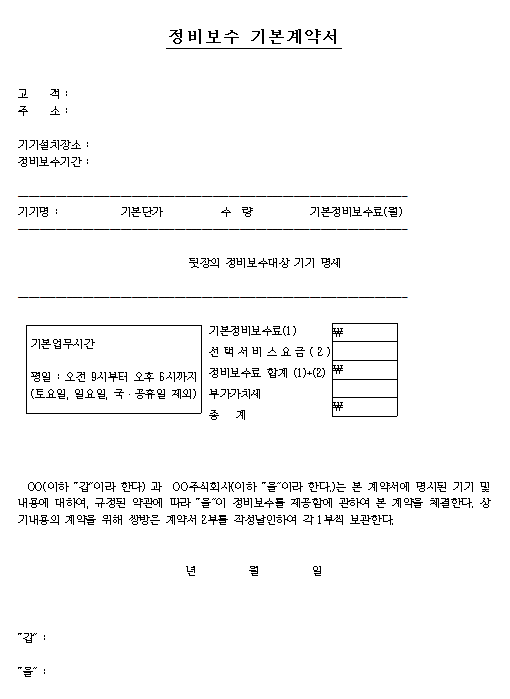 홈 문서/서식 [서식] 정비보수 (기본계약서) [서식] 정비보수 (기본계약서) 하보니 2월 25, 2021 서 식 명: 정비보수 (기본계약서) 서식 포맷: 파일 다운로드: 정비보수 (기본계약서).zip Tags: 계약서문서/서식 Facebook Twitter Whatsapp 다음 이전