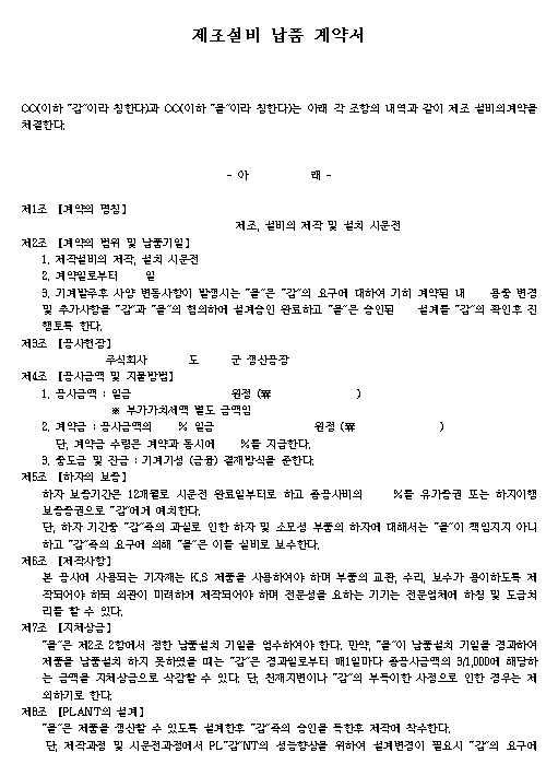 홈 문서/서식 [서식] 제조설비납품계약서 [서식] 제조설비납품계약서 하보니 2월 25, 2021 서 식 명: 제조설비납품계약서 서식 포맷: 파일 다운로드: 제조설비납품계약서.zip Tags: 계약서문서/서식 Facebook Twitter Whatsapp 다음 이전