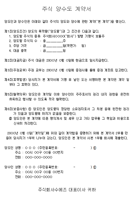 홈 문서/서식 [서식] 주식양수양도계약서 (2종) [서식] 주식양수양도계약서 (2종) 하보니 2월 25, 2021 서 식 명: 주식양수양도계약서 (2종) 서식 포맷: 파일 다운로드: 주식양수양도계약서 (2종).zip Tags: 계약서문서/서식 Facebook Twitter Whatsapp 다음 이전