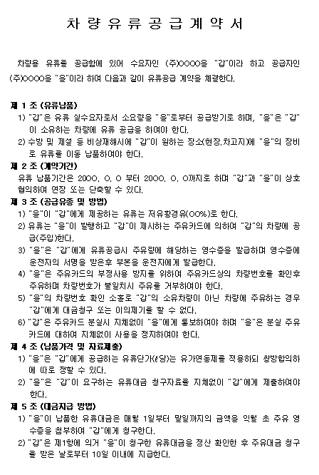 홈 문서/서식 [서식] 차량유류공급계약서 [서식] 차량유류공급계약서 하보니 2월 25, 2021 서 식 명: 차량유류공급계약서 서식 포맷: 파일 다운로드: 차량유류공급계약서.zip Tags: 계약서문서/서식 Facebook Twitter Whatsapp 다음 이전