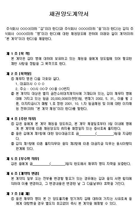 홈 문서/서식 [서식] 채권양도계약서 [서식] 채권양도계약서 하보니 2월 25, 2021 서 식 명: 채권양도계약서 서식 포맷: 파일 다운로드: 채권양도계약서.zip Tags: 계약서문서/서식 Facebook Twitter Whatsapp 다음 이전