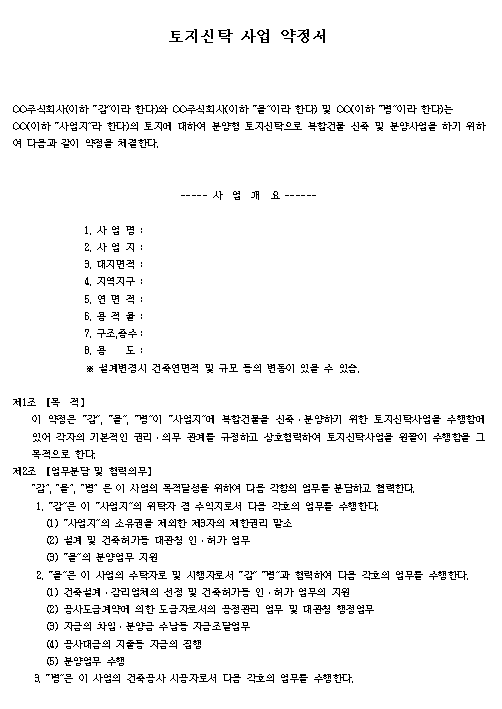 홈 문서/서식 [서식] 토지신탁사업약정서 [서식] 토지신탁사업약정서 하보니 2월 26, 2021 서 식 명: 토지신탁사업약정서서식 포맷: 파일 다운로드: 토지신탁사업약정서.zip Tags: 계약서문서/서식 Facebook Twitter Whatsapp 다음 이전