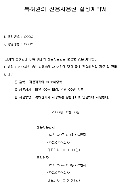 홈 문서/서식 [서식] 특허권의 전용사용권 설정계약서 [서식] 특허권의 전용사용권 설정계약서 하보니 2월 26, 2021 서 식 명: 특허권의 전용사용권 설정계약서서식 포맷: 파일 다운로드: 특허권의 전용사용권 설정계약서.zip Tags: 계약서문서/서식 Facebook Twitter Whatsapp 다음 이전