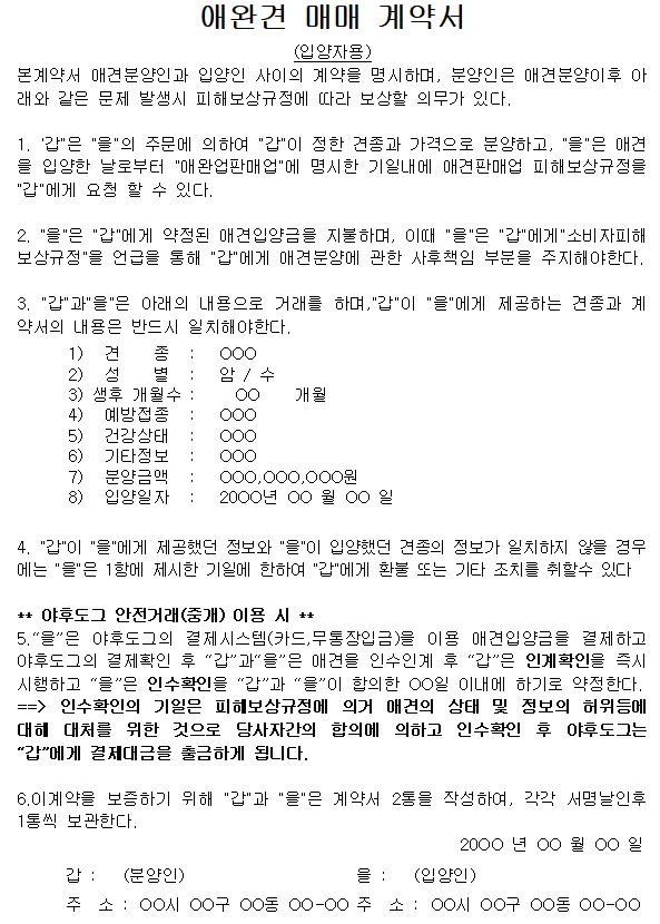 홈 문서/서식 [서식] 애완견매매계약서 [서식] 애완견매매계약서 하보니 2월 27, 2021 서 식 명: 애완견매매계약서서식 포맷: 파일 다운로드: 애완견매매계약서.zip Tags: 계약서문서/서식 Facebook Twitter Whatsapp 다음 이전