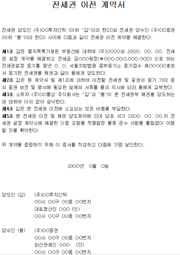 홈 문서/서식 [서식] 전세권이전계약서 [서식] 전세권이전계약서 하보니 2월 27, 2021 서 식 명: 전세권이전계약서서식 포맷: 파일 다운로드: 전세권이전계약서.zip Tags: 계약서문서/서식 Facebook Twitter Whatsapp 다음 이전