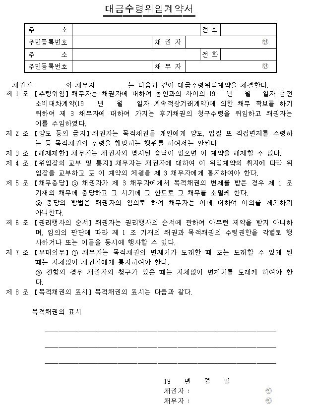 홈 문서/서식 [서식] 대금수령위임계약서 [서식] 대금수령위임계약서 하보니 2월 27, 2021 서 식 명: 대금수령위임계약서서식 포맷: 파일 다운로드: 대금수령위임계약서.hwp Tags: 계약서문서/서식 Facebook Twitter Whatsapp 다음 이전