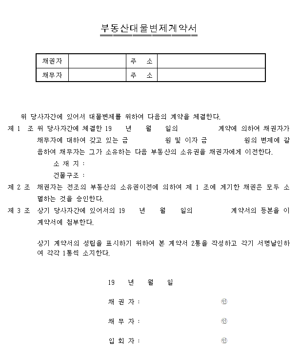 홈 문서/서식 [서식] 부동산대물계약서 [서식] 부동산대물계약서 하보니 2월 27, 2021 서 식 명: 부동산대물계약서서식 포맷: 파일 다운로드: 부동산대물계약서.hwp Tags: 계약서문서/서식 Facebook Twitter Whatsapp 다음 이전