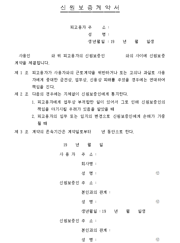 홈 문서/서식 [서식] 신원보증계약서 [서식] 신원보증계약서 하보니 2월 27, 2021 서 식 명: 신원보증계약서 서식 포맷: 파일 다운로드: 신원보증계약서.hwp Tags: 계약서문서/서식 Facebook Twitter Whatsapp 다음 이전