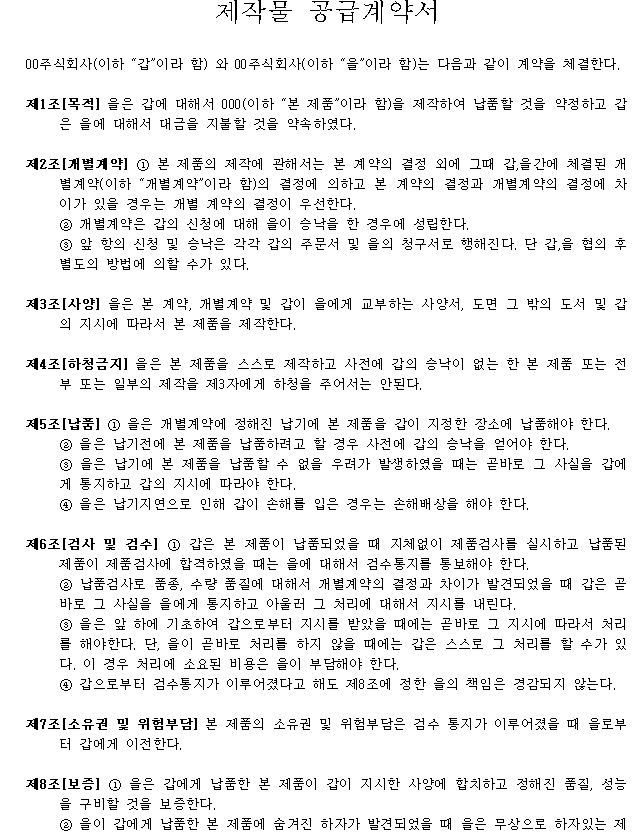 홈 문서/서식 [서식] 제작물공급계약서 [서식] 제작물공급계약서 하보니 2월 27, 2021 서 식 명: 제작물공급계약서 서식 포맷: 파일 다운로드: 제작물공급계약서.HWP Tags: 계약서문서/서식 Facebook Twitter Whatsapp 다음 이전