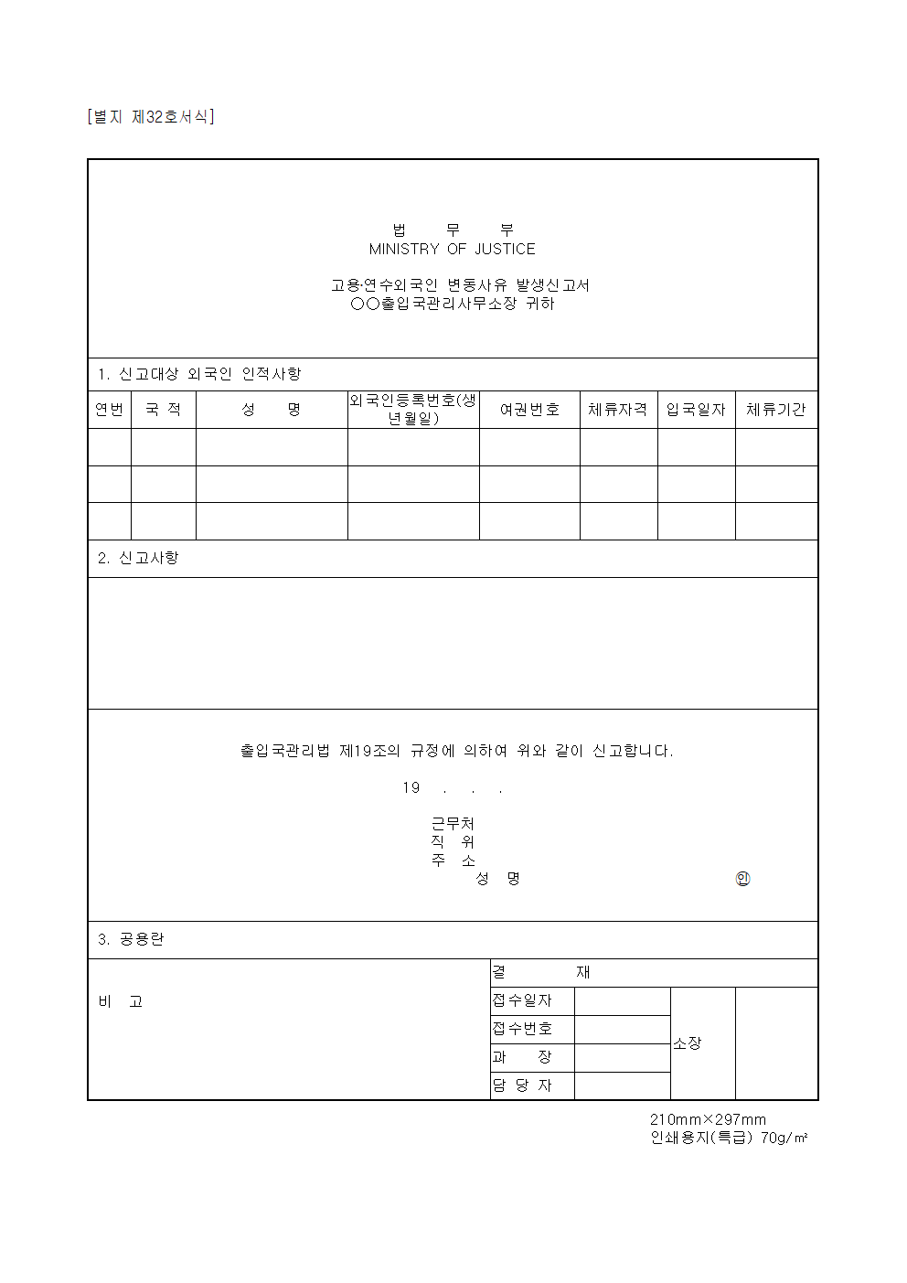 홈 민원/행정 [서식] 고용연수외국인 변동사유발생신고서 [서식] 고용연수외국인 변동사유발생신고서 하보니 2월 28, 2021 서 식 명: 고용연수외국인 변동사유발생신고서 서식 포맷: 파일 다운로드: 고용연수외국인 변동사유발생신고서.zip Tags: 문서/서식민원/행정 Facebook Twitter Whatsapp 다음 이전