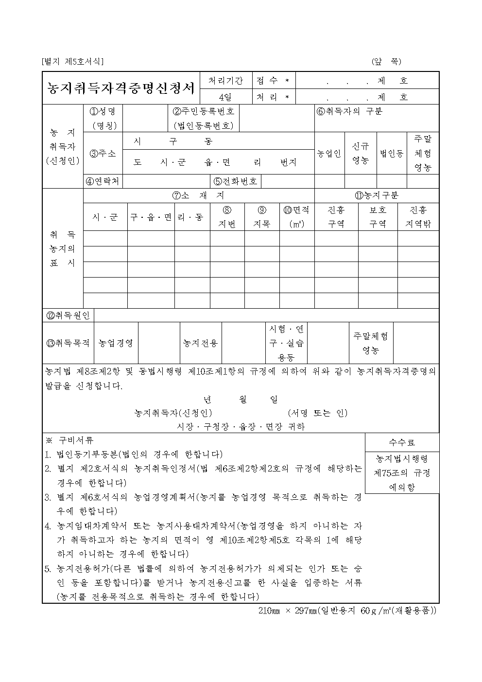 홈 민원/행정 [서식] 농지취득자격 발급신청서 [서식] 농지취득자격 발급신청서 하보니 2월 28, 2021 서 식 명: 농지취득자격 발급신청서 서식 포맷: 파일 다운로드: 농지취득자격발급신청서.zip Tags: 문서/서식민원/행정 Facebook Twitter Whatsapp 다음 이전