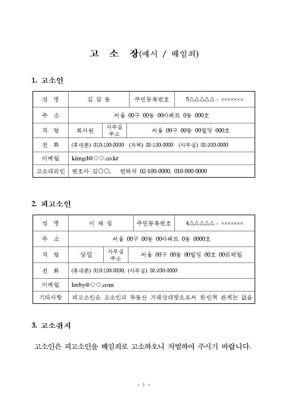 홈 민원/행정 [서식] 고소장 (배임, 횡령, 사기) [서식] 고소장 (배임, 횡령, 사기) 하보니 2월 28, 2021 서 식 명: 고소장 (배임, 횡령, 사기) 서식 포맷: 파일 다운로드: 고소장 (표준, 배임, 횡령, 사기).zip 고소장 서식에는 표준 고소장이 포함되어 있습니다. Tags: 문서/서식민원/행정 Facebook Twitter Whatsapp 다음 이전