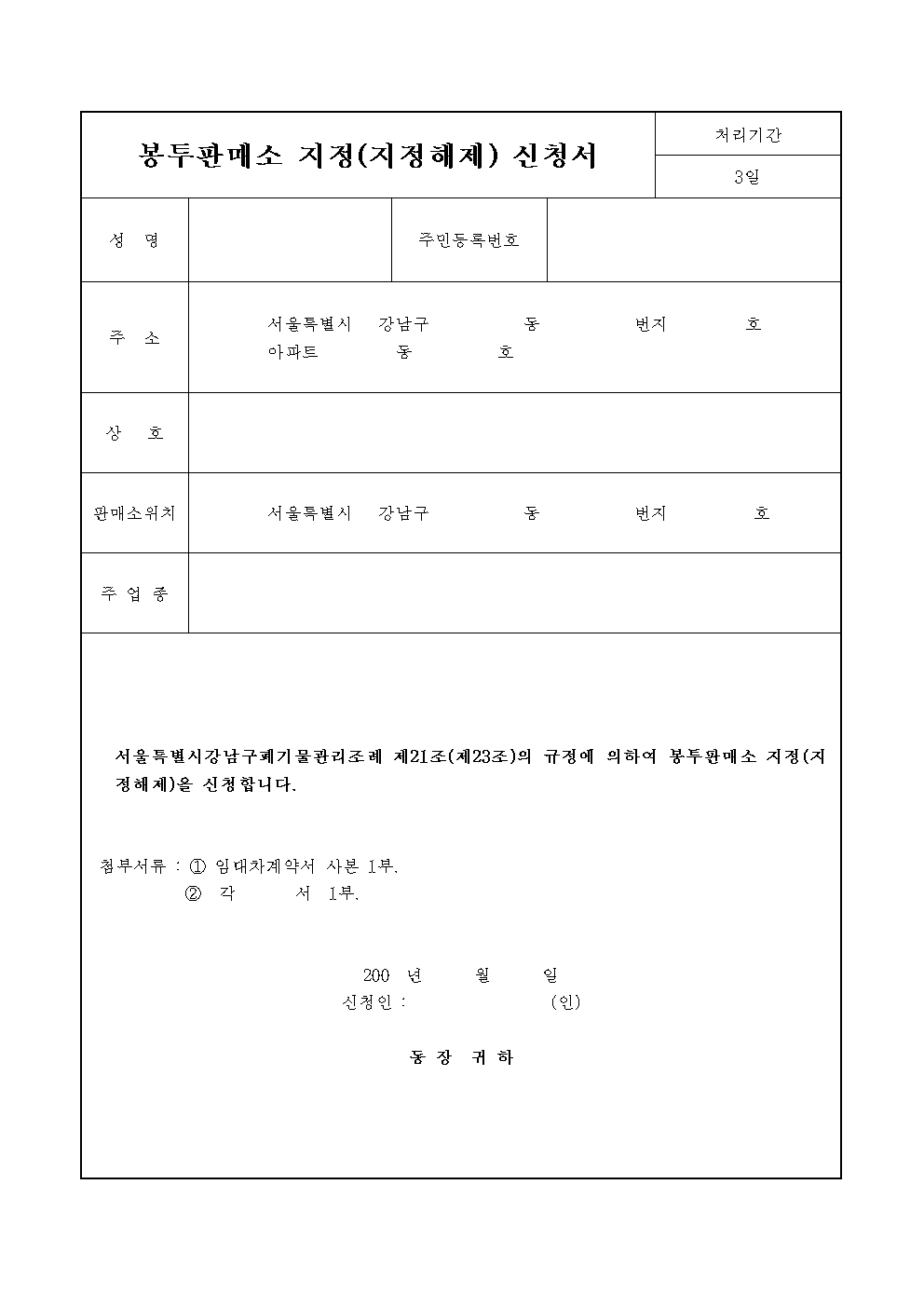 홈 민원/행정 [서식] 봉투판매소 지정 (지정해제) 신청서 [서식] 봉투판매소 지정 (지정해제) 신청서 하보니 3월 01, 2021 서 식 명: 봉투판매소 지정신청서(지정해제)서식 포맷: 파일 다운로드: 봉투판매소 지정신청서(지정해제).zip Tags: 문서/서식민원/행정 Facebook Twitter Whatsapp 다음 이전