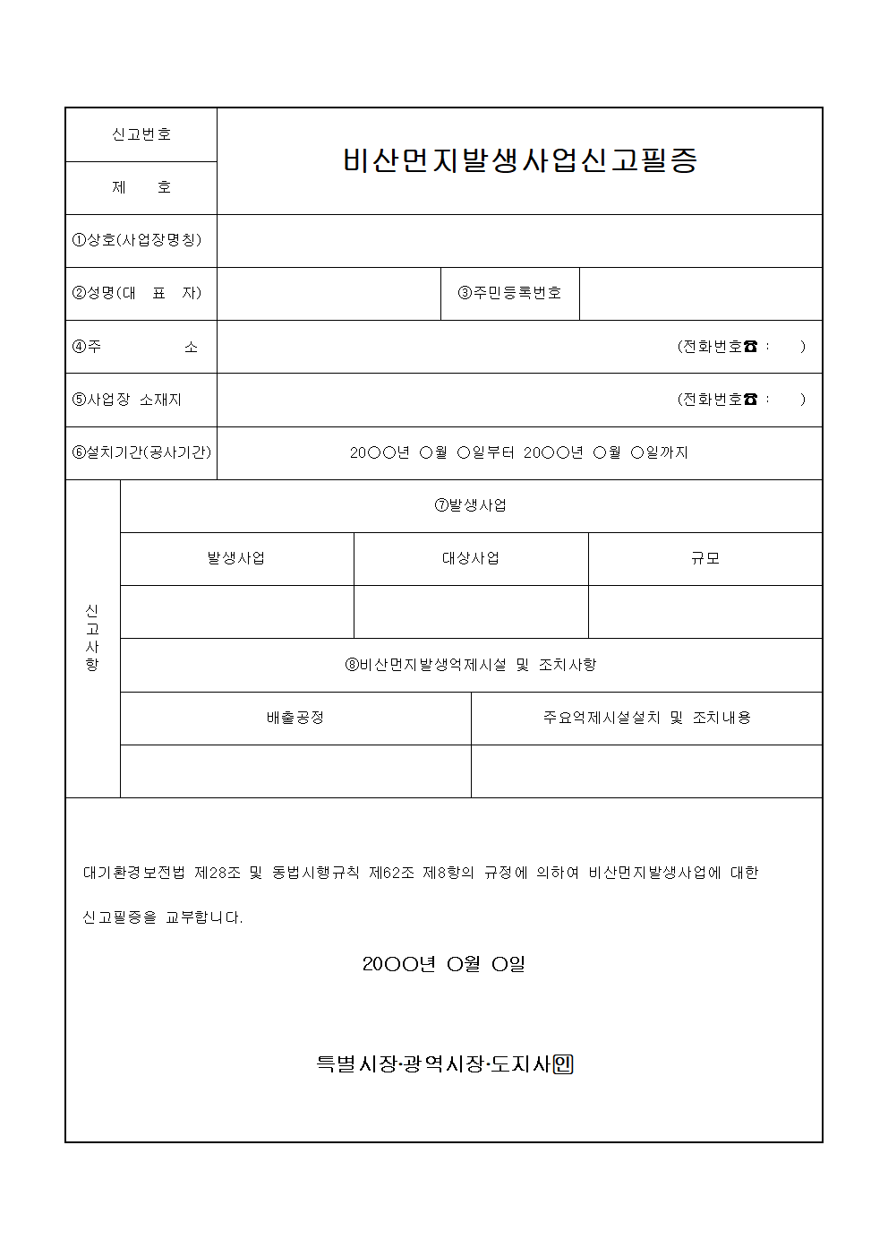 홈 민원/행정 [서식] 비산먼지발생사업신고필증 [서식] 비산먼지발생사업신고필증 하보니 3월 01, 2021 서 식 명: 비산먼지발생사업신고필증서식 포맷: 파일 다운로드: 비산먼지발생사업신고필증.zip Tags: 문서/서식민원/행정 Facebook Twitter Whatsapp 다음 이전