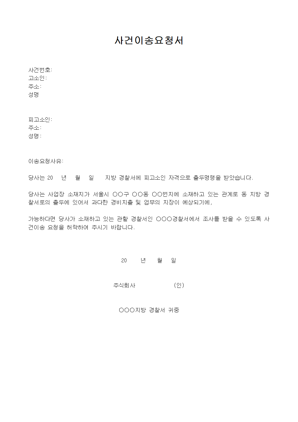 홈 민원/행정 [서식] 사건이송 요청서 [서식] 사건이송 요청서 하보니 3월 01, 2021 서 식 명: 사건이송요청서서식 포맷: 파일 다운로드: 사건이송요청서.zip Tags: 문서/서식민원/행정 Facebook Twitter Whatsapp 다음 이전