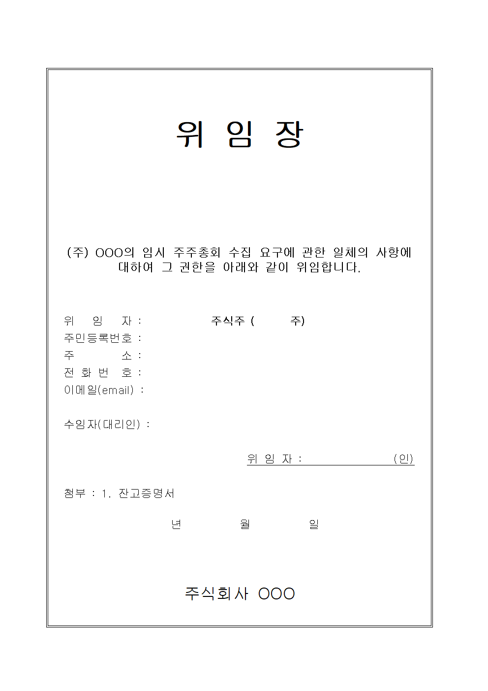 홈 회사서식 [서식] 위임장 (주주총회) [서식] 위임장 (주주총회) 하보니 3월 02, 2021 서 식 명: 위임장(주주총회)서식 포맷: 파일 다운로드: 위임장(주주총회).zip Tags: 문서/서식회사서식 Facebook Twitter Whatsapp 다음 이전