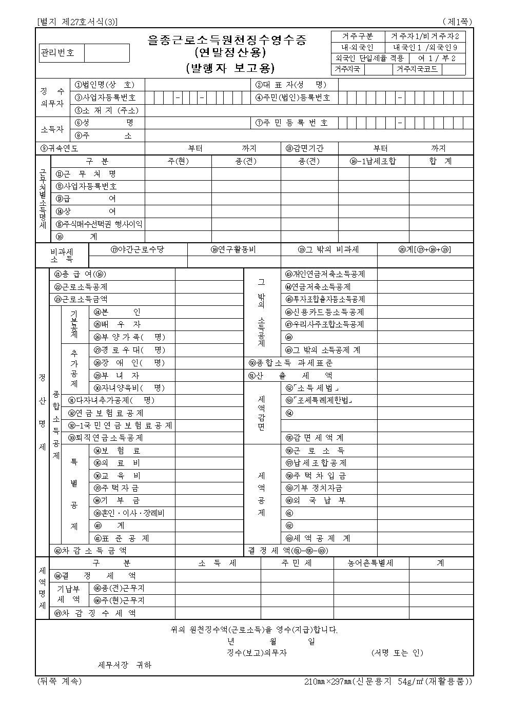 홈 민원/행정 [서식] 을종근로소득원천징수영수증 (지급조서) 2종 [서식] 을종근로소득원천징수영수증 (지급조서) 2종 하보니 3월 02, 2021 서 식 명: 을종근로소득원천징수영수증(지급조서) 2종서식 포맷: 파일 다운로드: 을종근로소득원천징수영수증(지급조서) 2종.zip Tags: 문서/서식민원/행정 Facebook Twitter Whatsapp 다음 이전