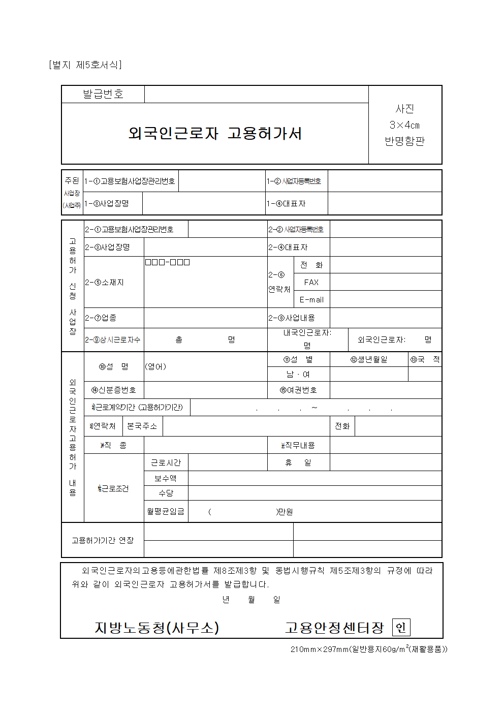 홈 민원/행정 [서식] 외국인 근로자 고용허가서 [서식] 외국인 근로자 고용허가서 하보니 3월 02, 2021 서 식 명: 외국인 근로자 고용허가서서식 포맷: 파일 다운로드: 외국인 근로자 고용허가서.zip Tags: 문서/서식민원/행정 Facebook Twitter Whatsapp 다음 이전
