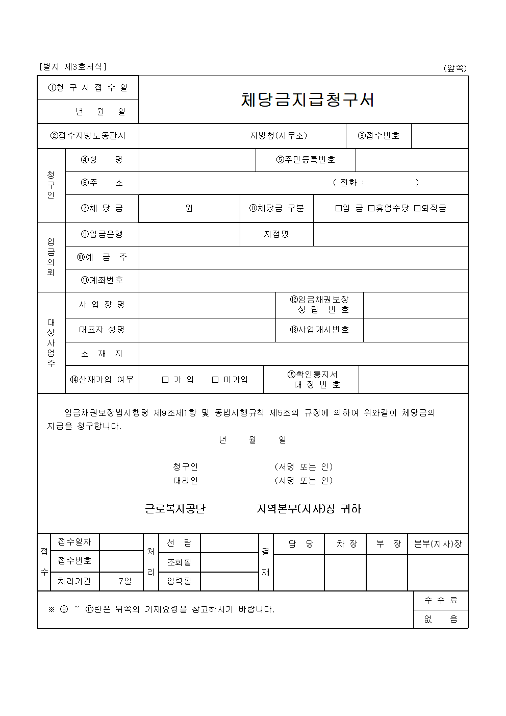 홈 민원/행정 [서식] 체당금 지급 청구서 [서식] 체당금 지급 청구서 하보니 3월 03, 2021 서 식 명: 체당금 지급 청구서 서식 포맷: 파일 다운로드: 체당금지급청구서.hwp Tags: 문서/서식민원/행정 Facebook Twitter Whatsapp 다음 이전