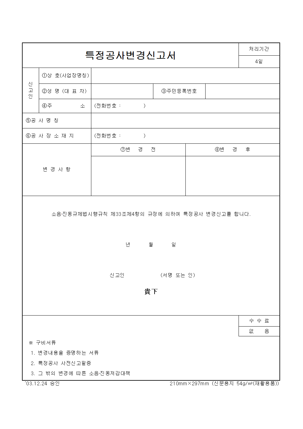 홈 민원/행정 [서식] 특정공사변경신고서 [서식] 특정공사변경신고서 하보니 3월 04, 2021 서 식 명: 특정공사변경신고서 서식 포맷: 파일 다운로드: 특정공사변경신고서.zip Tags: 문서/서식민원/행정 Facebook Twitter Whatsapp 다음 이전