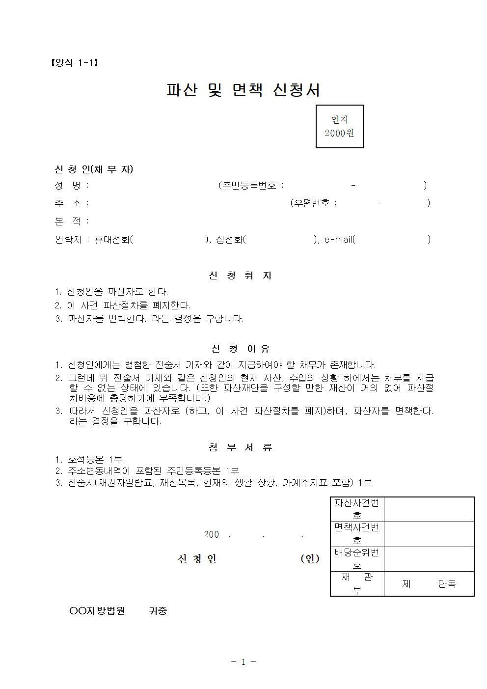 홈 민원/행정 [양식] 파산 및 면책 신청서 [양식] 파산 및 면책 신청서 하보니 3월 04, 2021 서 식 명: 파산 및 면책 신청서 서식 포맷: 파일 다운로드: 파산 및 면책 신청서 (양식).zip Tags: 문서/서식민원/행정 Facebook Twitter Whatsapp 다음 이전