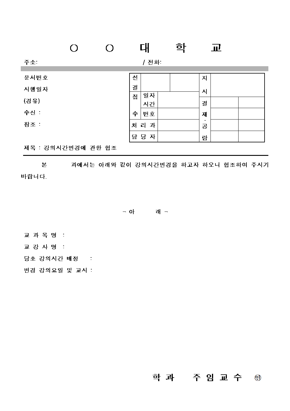 홈 생활서식 [서식] (대학교) 강의시간변경협조문 [서식] (대학교) 강의시간변경협조문 하보니 10월 26, 2022 서 식 명: (대학교) 강의시간변경협조문 서식 포맷: 파일 다운로드: 강의시간변경협조문.hwp Tags: 문서/서식민원/행정생활서식 Facebook Twitter Whatsapp 다음 이전